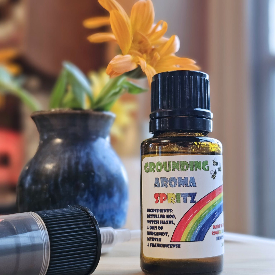 Grounding is intended to be an aroma to root you with Bergamot, Myrtle and Frankincense.